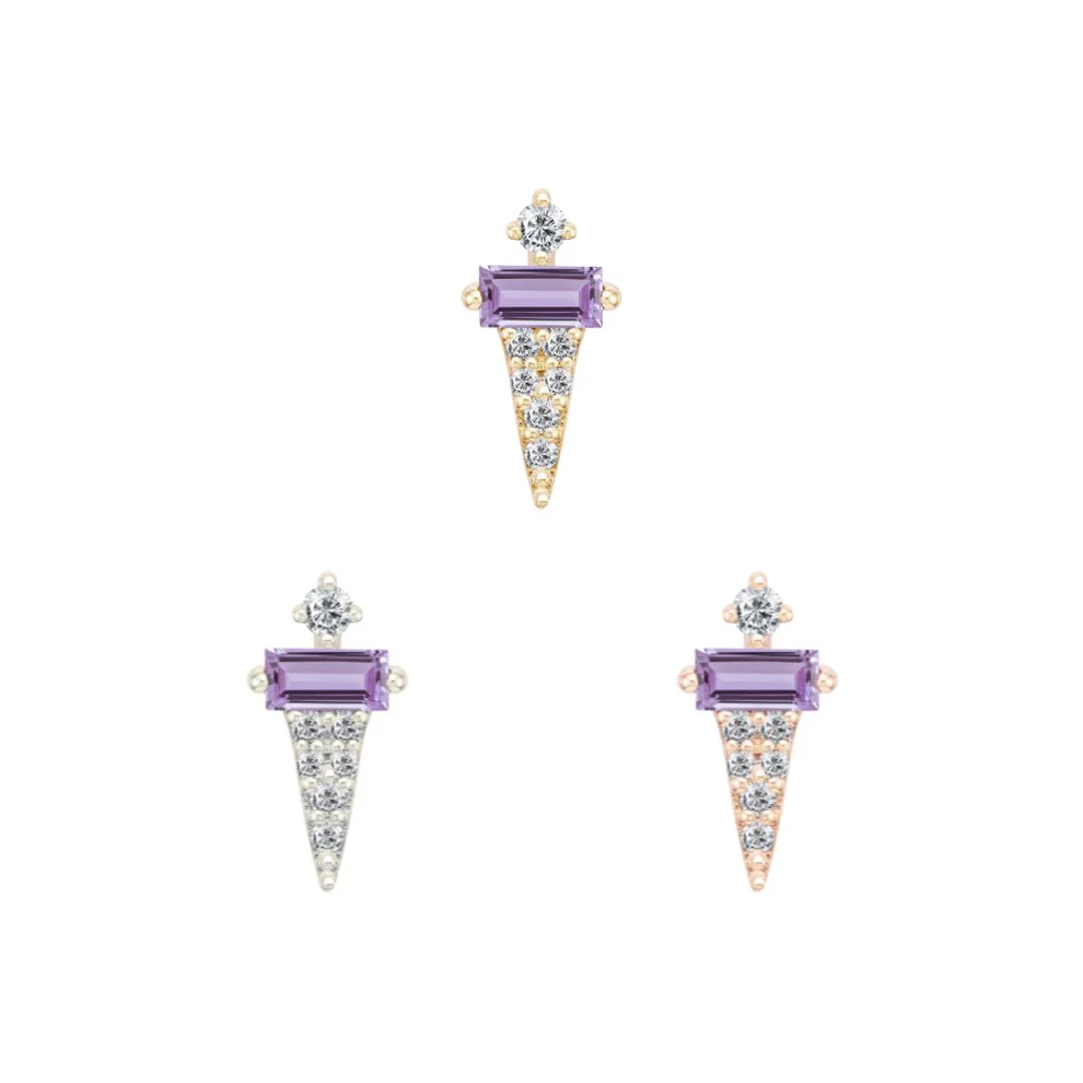 Dystrikt associe une améthyste riche taillée en baguette à sept zirconiums ronds pour créer un design géométrique épuré. Le violet profond contraste magnifiquement avec les zirconiums étincelants pour un look moderne et raffiné.